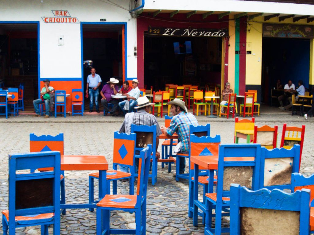 Once you’ve had your fill, enjoy a tinto or beer in the main square while you people watch. The color of the tables and chairs correspond to the cafe to which they belong. Have a seat and someone should be with you shortly.
